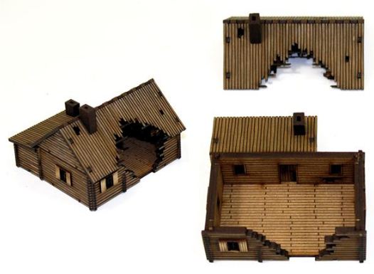 -3 x Battle-Damaged Timber Village buildings (PrePainted)