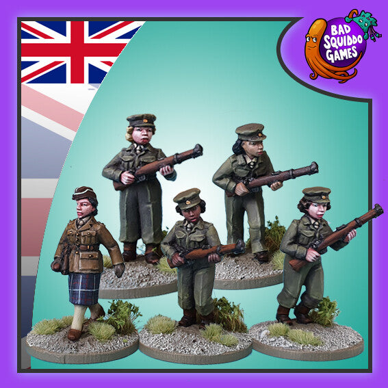 While women were forbidden from combat, it wasn't unusual for female members of the forces to be taught how to handle a weapon, as part of standard army practice as well as "just in case" a German invasion of Britain happened. These minis could be used to show them in training, or in town and village defence scenarios, as well as brilliant all round 40's style women with rifles for all manner of pulp and sci fi!