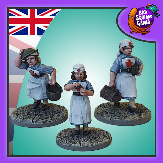 These three miniatures will be in poses that work perfectly for response to action. One is running forward with her medic bag, another is pouring a nice healing whiskey and the other - with helmet on, has a bucket ready to wash someone down or help with a fire.