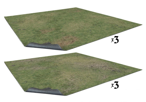 This box contains six gaming mats, each measuring 2′ x 2′ / 60cm x 60cm. They are printed in high quality on fabric with a 1mm neoprene backing. There are two different variants, three of each, depicting a grassy field. The mats can be combined to make a battlefield measuring up to 6′ x 4′ / 180cm x 120cm.The mats can be rolled or folded for easy storage.