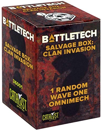 The BattleTech Salvage Box contains one random Wave One plastic miniature omnimech for use in the classic BattleTech tabletop and Alpha Strike games. The box also provides one dry-erase card, which are intended to directly support Alpha Strike gameplay, and one new Pilot Card. The miniature in each Salvage Box is determined randomly, although the Alpha Strike dry-erase card and Pilot Card match the OmniMech.