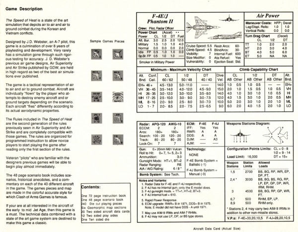 The Speed of Heat is the first offering in the new Air Power series of games examining jet combat throughout history. This volume brings to life the magnificent strengths and limitations of the early to mid-period jets and their weapon systems.