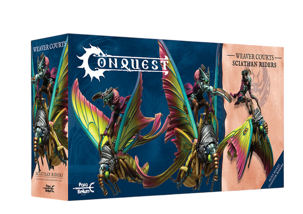 Lunopeth Moths were tamed and bound millennia ago by the Weaver Courts. Long lines of these night flyers have been life-bound to the weavers for so long, they are now an inseparable part of their society. The tangled terrain and verticality of the Weaver Domains lends itself to flying mounts. Their delicate bodies do not lend themselves well to the rigors of combat, but the Weavers have compensated for this, arming their riders with ranged weapons. The Skiathan Riders go to combat armed with cunningly wrought arbalests they can fire while on the wing, harrying the foe without exposing themselves to danger.