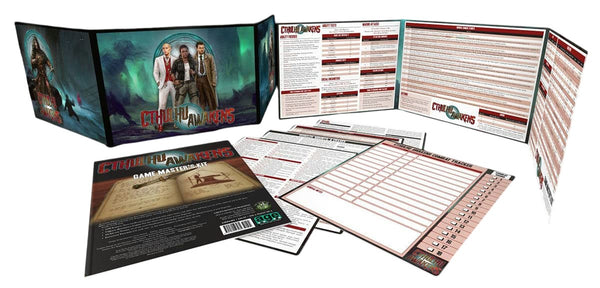 The Cthulhu Awakens Game Master's Kit is a collection of resources that helps you smoothly deliver terror and adventure to your players. It provides a sturdy Game Master's screen that displays stunts and other essential information. Six quick reference cards provide further assistance with commonly used rules, and a dry-erase friendly combat tracker that helps you follow violent moments of triumph, or doom. The secrets of the Game Master’s Kit are revealed in Unexpurgated Texts, a booklet detailing a dozen fell grimoires and their modern counterparts, each in an expanded, 2-page format listing the eldritch workings and other strange secrets each of them contains. The Cthulhu Awakens Game Master's Kit is the perfect complement to the game’s core rulebook.