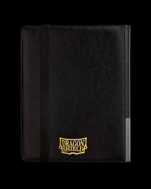 Stylish black with a splash of the golden Dragon Shield logo. 20 pages with 18 side-loaded card pockets for a total of 360 card slots.
