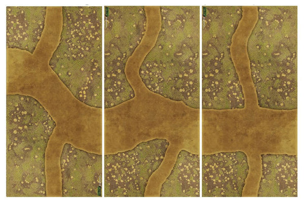 The Mekong River Mat set is designed to give you an ever-changing wargame landscape. It comes with three 2’x4’ (60cm x 12cm) panels, so lining them all up next to each other will give you a full 6’x4’ table. Each small panel can be re-arranged in a number of ways to provide you with several different configurations.