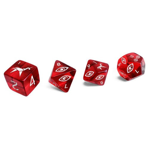 A set of four engraved Base Dice, designed specifically for the official Blade Runner RPG. These special dice are designed to support the game mechanics but can be used as normal dice as well.