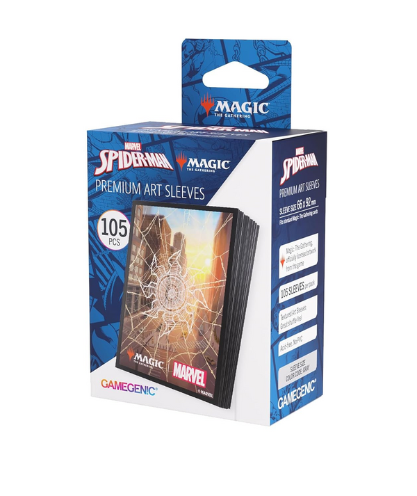 "Protect your deck in style with the Marvel’s Spider-Man Premium Art Sleeves, officially licensed for Magic: The Gathering. These premium-quality sleeves showcase bold full-color Spider-Man artwork while delivering the superior performance serious players demand. Each pack contains 105 sleeves, enough for a full Commander deck plus extra slots for tokens or sideboards. Designed with a matte textured back and clear front, these sleeves offer a smooth shuffle experience, comfortable handling, and enhanced durability. The fully opaque design makes them tournament-legal and perfect for double-sleeving, ensuring both protection and fairness. Packaged in eco-friendly, plastic-free full-art packaging with a retractable hanger, these sleeves combine functionality, sustainability, and striking presentation—making them a must-have for Marvel fans and Magic players alike."