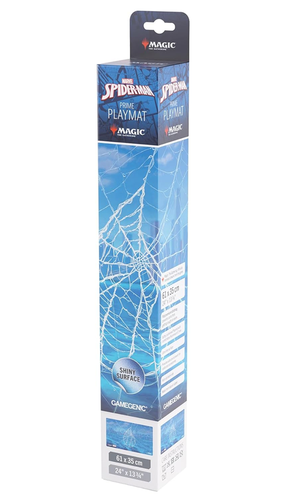 Elevate your gameplay with the Marvel’s Spider-Man Shiny Playmat, an officially licensed Magic: The Gathering accessory designed for both style and performance. Featuring bold Spider-Man artwork, this 61 x 35 cm premium playmat combines immersive visuals with superior functionality. Crafted with an ultrafine shiny surface treatment, the mat enhances print quality while ensuring seamless card movement and an exceptionally smooth playing experience. A 2mm cushioned top layer protects cards and tokens from wear, while the anti-slip rubber backing keeps the mat firmly in place during intense matches. Gamegenic’s innovative flat premium stitching prevents cards or sleeves from catching on the edges, ensuring uninterrupted gameplay. The playmat rolls up easily for transport, making it perfect for tournaments, local events, or casual play. Durable, stylish, and functional, this Spider-Man playmat is a must-have for Marvel fans and Magic players looking to combine protection, performance, and iconic design.