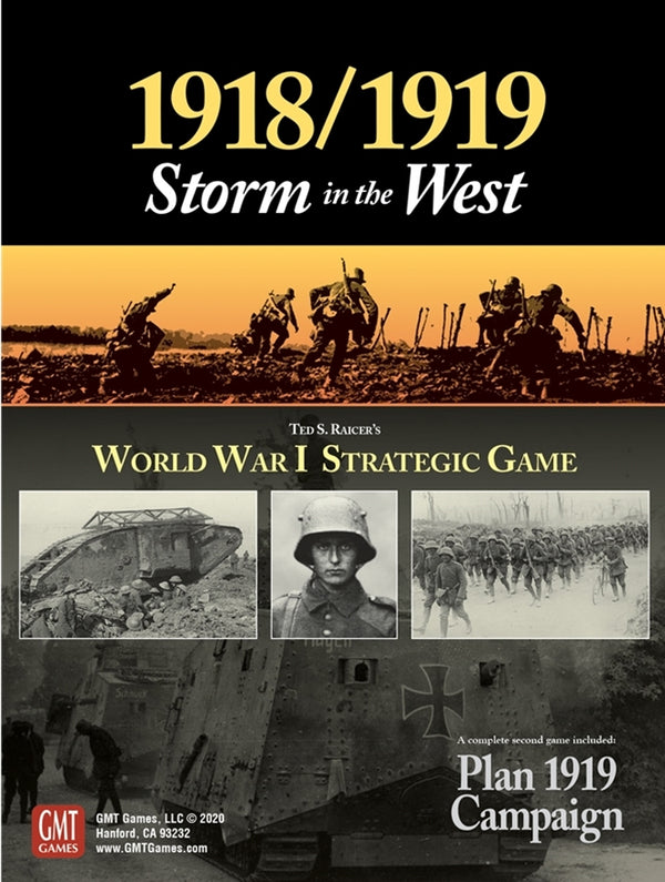 In 1992, Ted S. Raicer published his first design in the late lamented Command Magazine, 1918: Storm in the West, covering the last nine months of WWI on the Western Front. The game was an immediate success, earning a Charles S. Roberts Award nomination, and leading to the design of a Plan 1919 variant which assumed a German defensive strategy in 1918 and an all-out Allied assault to win the war the following year. GMT is pleased to offer a new boxed version of these classic Great War designs, with new artwork, and including an additional 1918 Allied Offensive scenario published later in Command.