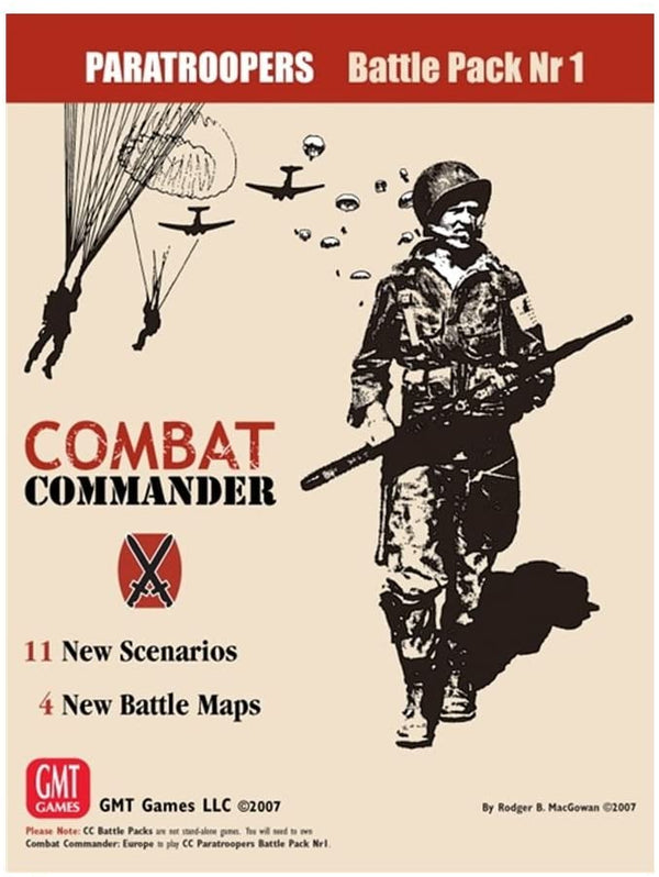 Combat Commander: Battle Pack #1 – Paratroopers is the first of what will be many themed collections of scenarios for use with the Combat Commander: Europe series of games. The theme of this first Battle Pack is focused on the exploits of American, German and even Russian Airborne forces. CC–Paratroopers features eleven new scenarios printed on cardstock, as well as four new maps. Future Battle Packs will be similarly structured and may also include new counters or new cards – with themes such as “Stalingrad”, “Partisans” and “Desert Rats” to name just a few.