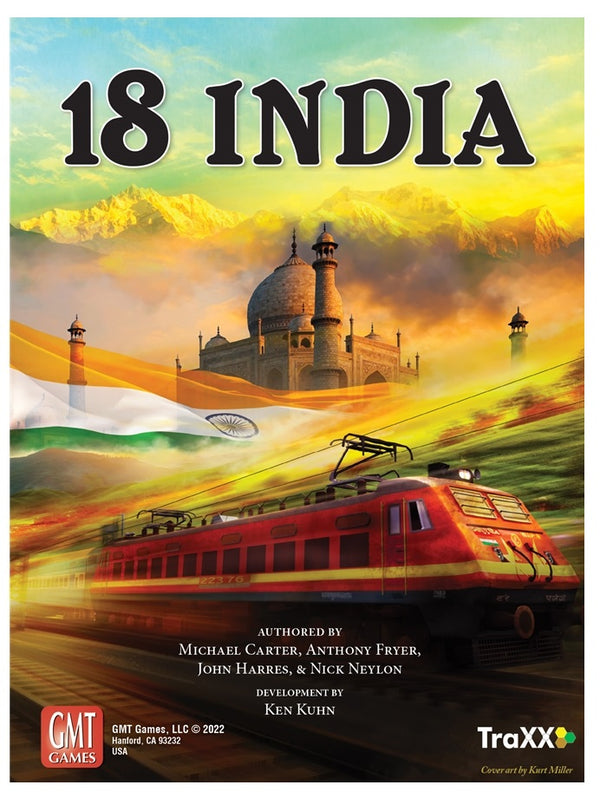 18 India is an operational railroad game for 2 to 5 people that plays in about 3 hours. The game is inspired by 1829 Mainline by Francis Tresham, and while the venerable Mr. Tresham created some novel mechanics for that game, many of them are not ideal for players that eschew in-game randomness. In 18 India, those random elements are transformed into an amazing level of pre-game variability, which gives each session of the game a different character. Critically, 18 India causes players to think differently about 18XX standards such as train management and investments.