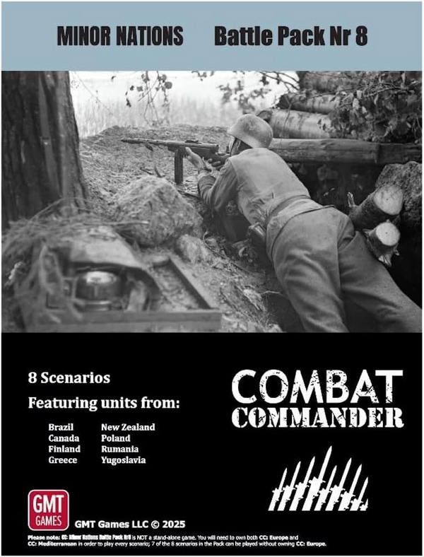 Expand your Combat Commander experience with Battle Pack #8: Minor Nations, a thrilling addition that brings eight new nations to the battlefield. This expansion pack introduces units from Brazil, Canada, Finland, Greece, New Zealand, Poland, Romania, and Yugoslavia, each with their unique capabilities and historical scenarios. The pack includes 304 high-quality counters (44 weapon, 40 control markers, and 220 unit counters) and 8 meticulously crafted scenario cards representing diverse WWII engagements. From Brazil's 'Misty Mountain' to Finland's 'A March in December,' each scenario offers distinctive tactical challenges. Note that this is not a standalone game - you'll need both Combat Commander: Europe and Combat Commander: Mediterranean to play. This GMT Games release is designed for adult strategy gamers seeking to explore the lesser-known but equally fascinating theaters of WWII. Perfect for experienced Combat Commander players looking to diversify their tactical options and historical scenarios. Included in: The Minor Nations BP is also included in the Combat Commander 20th Anniversary Edition which encompasses Combat Commander: Europe and Combat Commander: Mediterranean. Bagged Format.