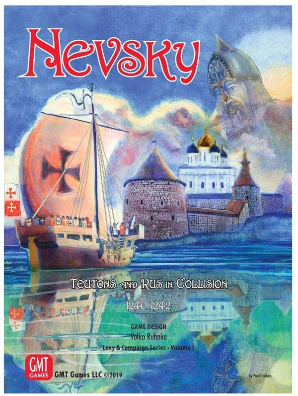Nevsky: Teutons and Rus in Collision, 1240-1242 is a board wargame about the storied clash between Latin Teutonic and Orthodox Russian powers along the Baltic frontier of the mid-13th-Century. It is the first volume in GMT Games’ Levy & Campaign Series portraying military operations in a variety of pre-industrial conflicts. In Nevsky, players raise and equip their armies, then provision and maneuver them to ravage or conquer enemy territory or defeat enemy forces in battle. Feudal politics obligate an array of lords and vassals to serve on campaign—but only for limited periods. Players must keep an eye on the calendar and reward lords to keep their armies in the field.