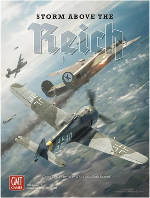 Storm Above the Reich is a solitaire game depicting a Luftwaffe squadron of Fw190s struggling to deter and destroy the relentless daylight raids over Germany during World War Two. The player's individual aircraft, each represented by a stickered block, must confront the mighty "combat box" formation of the United States Army Air Force, a deadly terrain of B-24 Liberator heavy bombers. Like its counterpart, Skies Above the Reich, the game is a broad strokes depiction that presents the arc of the desperate air war. Stretching from late 1942 to early 1945, Storm Above the Reich follows that trajectory in a series of missions strung together to make a campaign. Each mission will take a half hour or more to play, while a campaign can last anywhere between 6 to 60 missions.