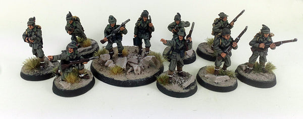 Contains 10 metal 28mm Italian Alpini Infantry figures.