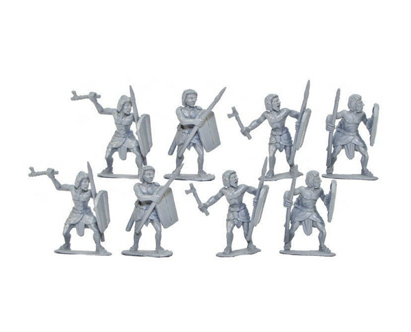 These early close fighters are un-armoured and are equipped with a Spear, Axe and a Shield. It appears that no helmets were worn by the common regular foot soldiers at this time.