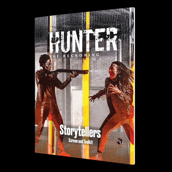 Bring your stories of desperate measures for Hunter: The Reckoning to life with the Storyteller’s Screen and Toolkit. The four-panel Storyteller’s Screen displays all-new art on the front and key reference tables for the Storyteller on the back, all the while keeping your notes and rolls secret. The Storyteller’s Toolkit is full of additional rules advice covering more situations (whether investigation or combat), a list of witnesses for Storyteller inspiration, and a complete story you can use for one or more evenings of play.