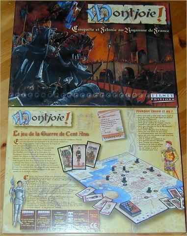 Components: 1 mounted game board 80 cards (a la Tarot) 36 resin cast castles and strongholds die-cut coin markers and garrisons representing the factions of France, England, Navarre, Brittany, Flanders and Burgandy. Playing time: 4-6 hours