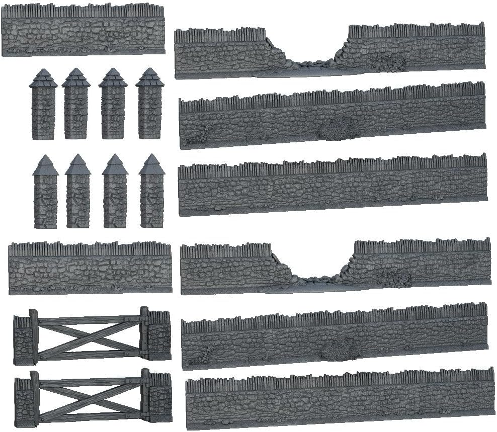 In the heat of battle, a sturdy stone wall can be a welcome piece of cover - so long as it is intact. This set includes sections of stone wall, complete with fence posts and gates to connect them and toppled wall sections.
