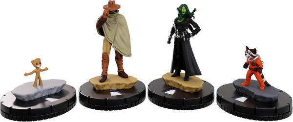 Are you ready to play the hits? Star-Lord is ready to lead the Guardians of the Galaxy to victory in your next HeroClix match! With the Marvel HeroClix 400: Guardians of the Galaxy you'll be ready to play a super-sized game of HeroClix with your friends! What is HeroClix 400? HeroClix 400 is a product where players will get a full theme team of characters to play right out of the box. They’ll recognize these teams from some of their favorite comic book stories. The “400” describes the build total – these characters can be used for 400-point games instead of just the usual 300-point games, but they’ll be playable as 300-point teams too! Why focus on 400-point games? Our most competitive players have enjoyed 300-point games for a long time. It’s been one of the default modes for as long as we can remember. However, over time, we’ve heard from tournament organizers and casual fans that 400-point games are a lot of fun. They get to play slightly larger squads and slightly higher point-value heroes they love. To support these fans, the design team wanted to offer a product that would immediately scale to those bigger games. HeroClix 400 lets players manage a tight team of their faves at 400-points, right out of the box without having to worry over team building. Our suspicion is that after getting in a few games with these super-sized teams, players will find a character or two from their collection that they’d love to try including in their HeroClix 400 team. By using their out-of-the-box team at their 300-point level they’ll have the space on their force for those characters!
