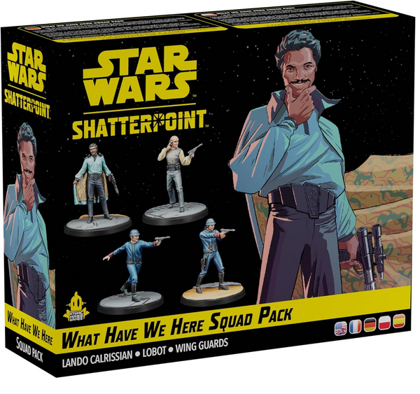 The ‘What Have We Here’ Squad Pack introduces the galaxy’s favorite scoundrel turned hero, Baron-Administrator Lando Calrissian! Assisted by his trusted officer, Lobot, and two Cloud City Wing Guards, this pack brings iconic characters from the skies of Bespin to the tabletop. With a suave pose and dashing miniature, Baron-Administrator Lando Calrissian will be a fun miniature for Star Wars hobbyists to paint and add to their Shatterpoint collection.
