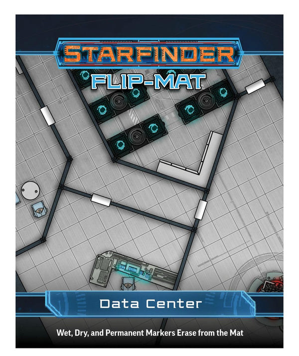 Whether its digital information stored on computer servers, or ancient magical relics that hold the hidden language of the cosmos, there’s always the need to store your data somewhere safe and secure. One side of these maps depicts a futuristic data center with a backroom full of servers, a large open foyer perfect for a long-range gun fight, and countless vents and access points. The opposite side depicts a more mystical repository containing ancient relics, lost tomes, weird bio-vats, and even a portal to dimensions unknown. Starfinder Flip-Mats present ready-to-use science-fantasy set pieces for the busy Game Master. With Starfinder Flip-Mat: Data Center, you’ll be ready for the next encounter!