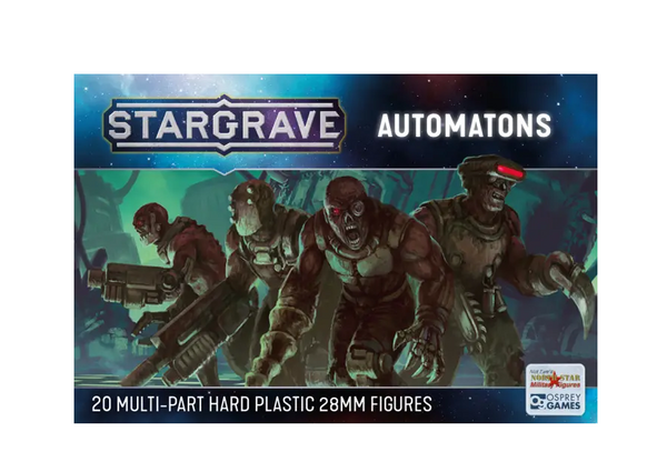 A horrific fusion of dead flesh and advanced cybernetics, automatons are drones in thrall to a synthetic intelligence. Though individually modified with a variety of implants, weapons, and armour, all automatons are driven by an unrelenting core directive to consume and integrate technology and organic matter alike. This boxed set offers enough parts to build 20 cyborg monstrosities for Stargrave that can be used to menace independent crews. These parts can also be combined with components from other Stargrave boxed sets to create characters with cybernetic implants or to add even more variety to an automaton horde. 28mm sized plastic figures, supplied unassembled and unpainted.