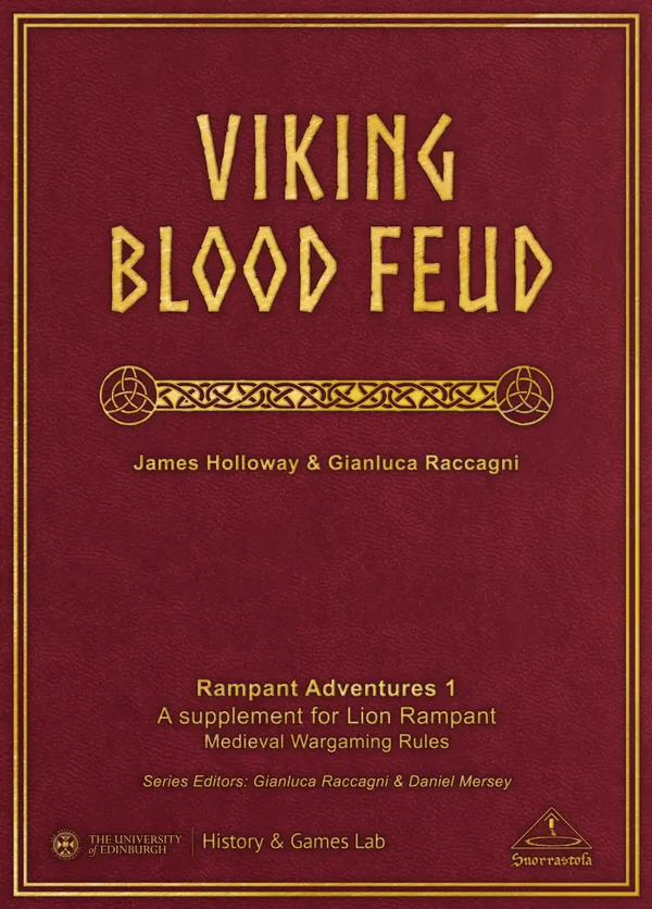 Lion Rampant: Viking Blood Feud is an expansion for Lion Rampant Medieval Wargaming Rules: Second Edition. It brings to tabletop life the dramatic and evocative blood feuds of the Icelandic sagas, and enables you to create your own saga. Set in the Viking Age, the Icelandic sagas offer unique glimpses into the everyday lives of relatively ordinary but larger than life characters, who experienced twists of fate, conflicts, and heroic as well as petty deeds, all set in a stunning subarctic landscape on the edge of the habitable world. Blood feuds play centre stage in many sagas. Their violent clashes provide dramatic plot twists, but they are also like thunderclaps in quarrels in which surrounding Icelandic society is spectator and judge. Battlefield victories are often stages of wider games of honour, glory, and social standing. The expansion provides historical lore on Viking Age Iceland and its sagas, and then brings them to your tabletop with suggestions on how to create your warband and bring to life your characters; optional rules and terrain ideas; five standalone scenarios; and a campaign system that fleshes out the origins of the feud, determines how scenarios affect your characters, and uses feud actions that determine the direction of the campaign and add complications or temporary advantages.