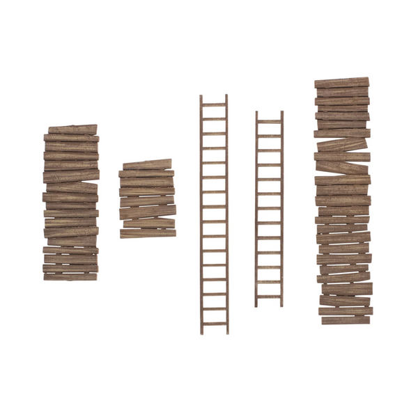 Fighting effectively in an urban setting means being able to traverse and scale the available terrain rapidly alongside utilising hastily constructed defences. The Ladders and Walkways set contains 4 of each of the components pictured providing ladders and walkways/barricades to embellish your gaming table further.