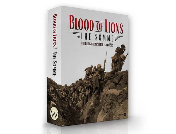 Blood of Lions is a WWI solitaire wargame depicting the actions of the British 4th Army during the month of July at the Battle of the Somme. The game uses a combination of dice, cards, generated Command and Leadership points as well as some push your luck mechanics in order to advance on objectives and obtain victory points.